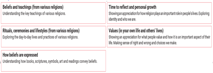 We use the following areas to ensure that our RE curriculum offers breadth and depth of coverage.
